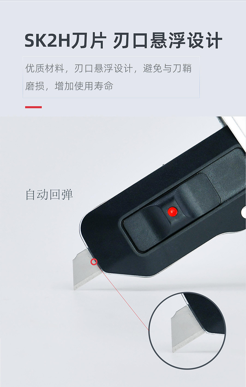 >ZKH/震坤行 迷你伸缩开箱美工刀安全刀 HHT-KFB01 9mm 含SK2H合金钢刀片 1把