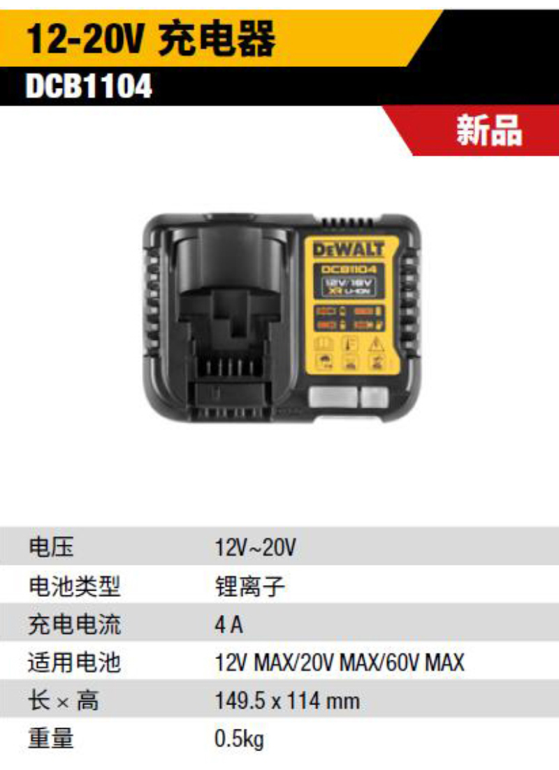 DEWALT/得伟 4A充电器 DCB1104-A9 12~20V(4AMP电流) 1个