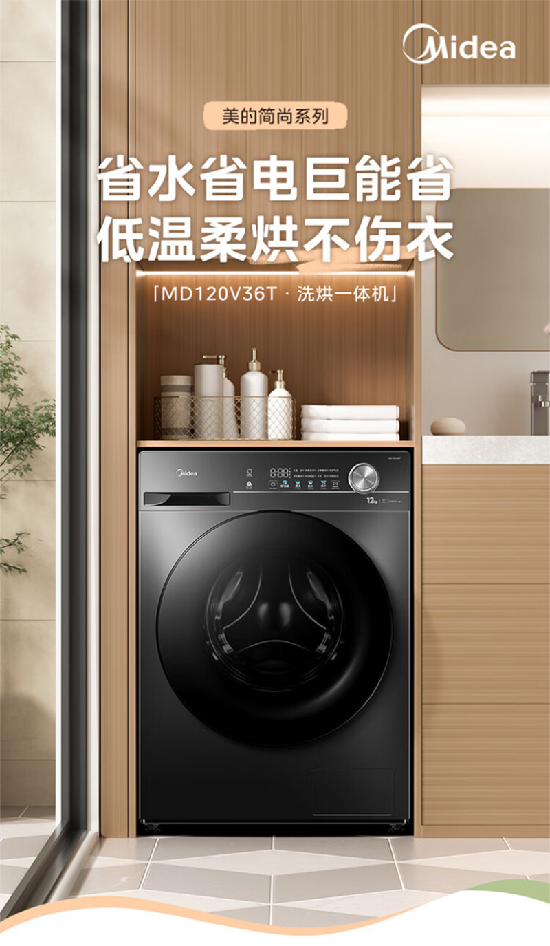 >MIDEA/美的 洗烘一体机 MD120V36T 12kg洗涤9kg烘干 一级能效 含基础安装 1台