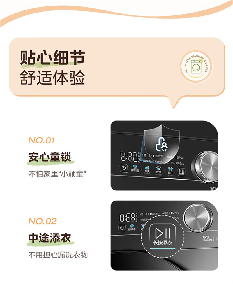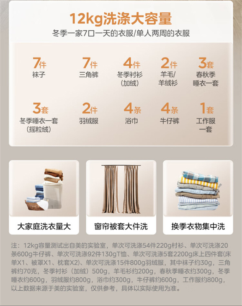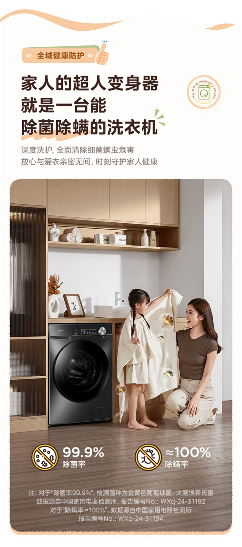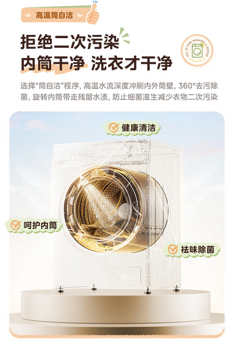 220一级能效含基础安装人工洗涤12/烘干9595×632×850mmMIDEA/美的MD120V36T洗烘一体机