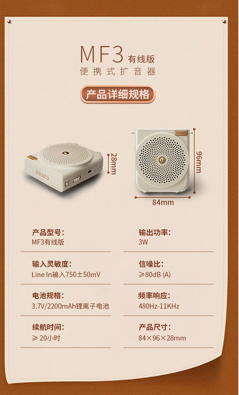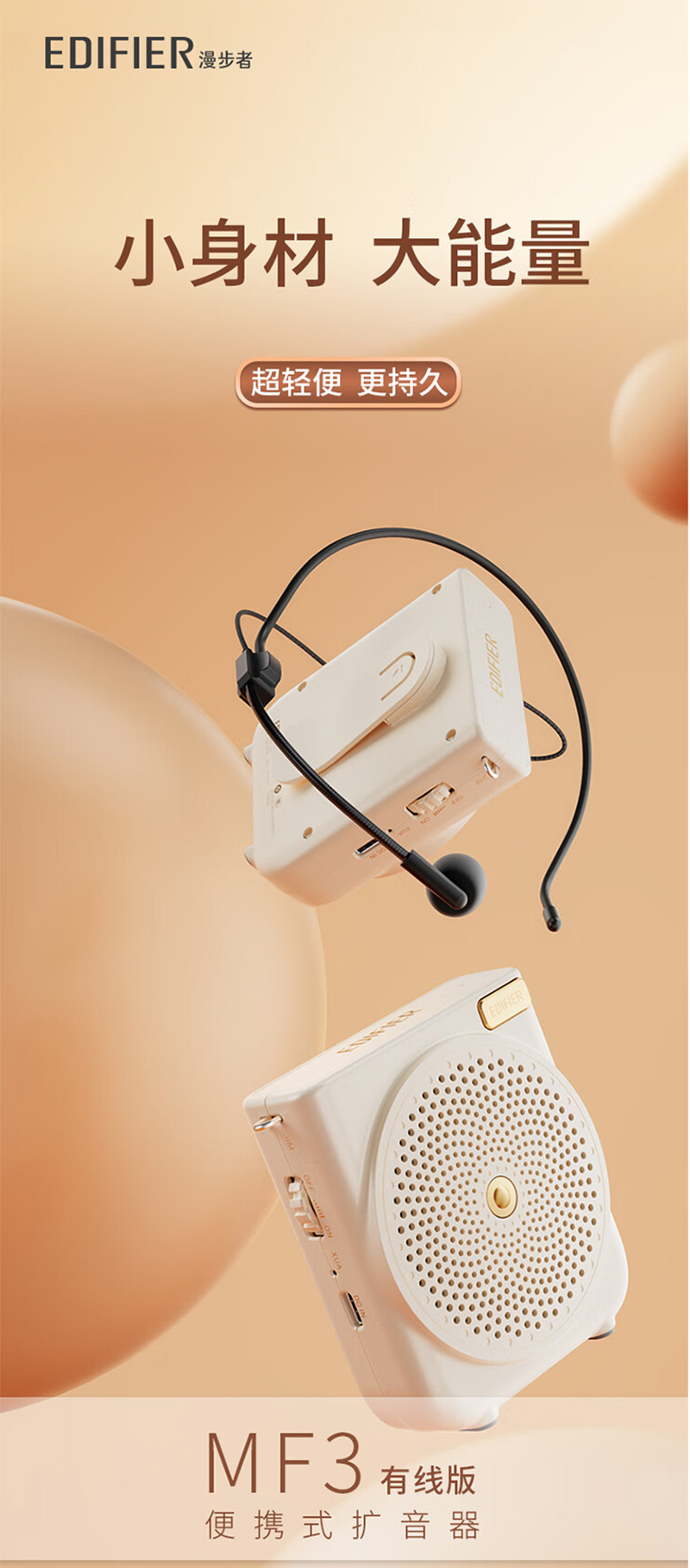 >EDIFIER/漫步者 小蜜蜂扩音器 MF3 有线版便携式 云岩白 1个