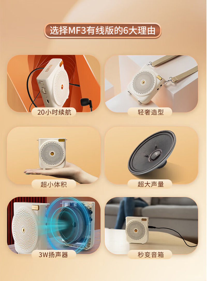 EDIFIER/漫步者 小蜜蜂扩音器 MF3 有线版便携式 云岩白 1个