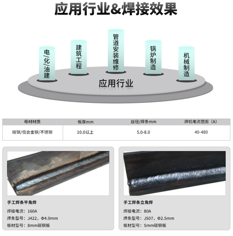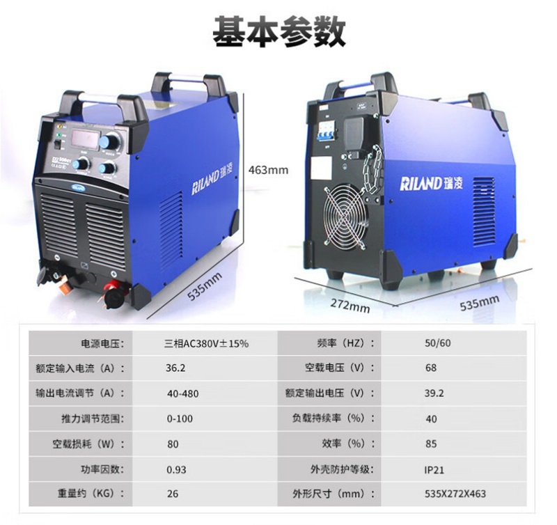 焊帽手套 焊枪地夹 20m焊把线380V53.5×27.2×46.3cm40~480A480A40%380V26kg53.5×27.2×46.3cmRILAND/瑞凌ZX7-500GT380V直流手工电焊机