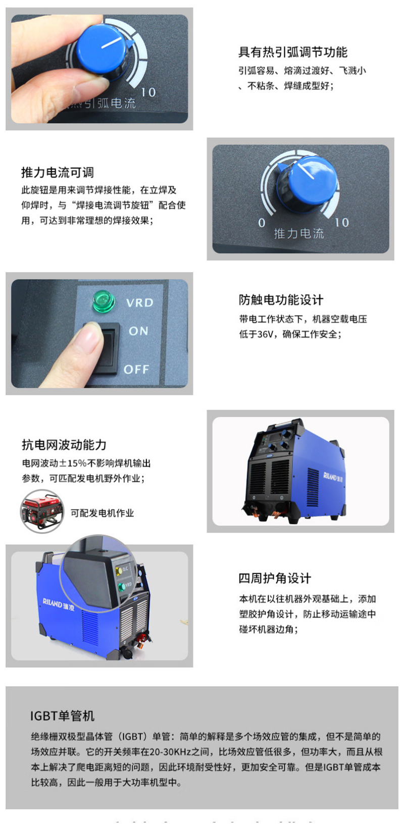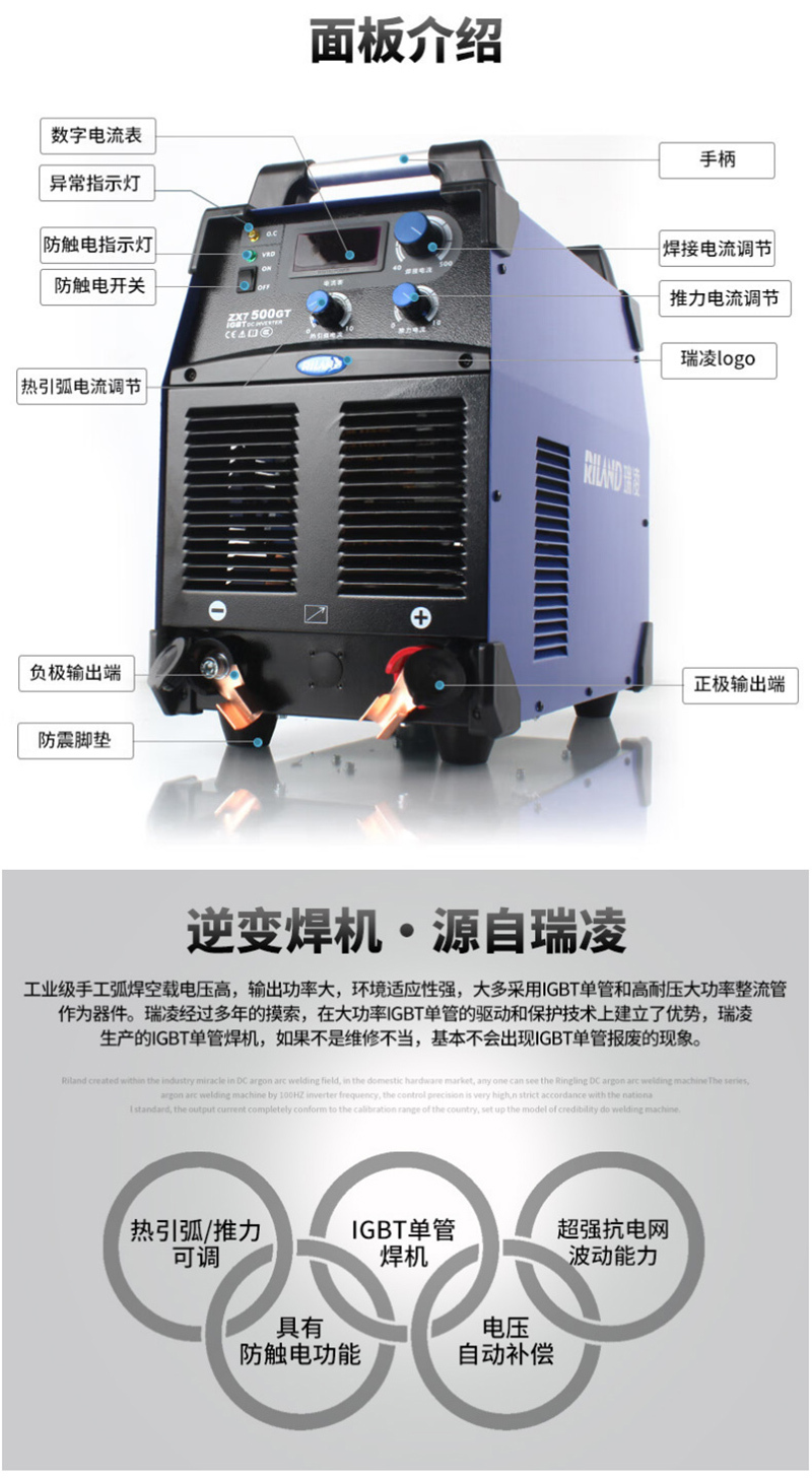 >RILAND/瑞凌 380V直流手工电焊机 ZX7-500GT 含焊帽手套 焊枪地夹 20m焊把线(部分附件为适配主机产品) 1套