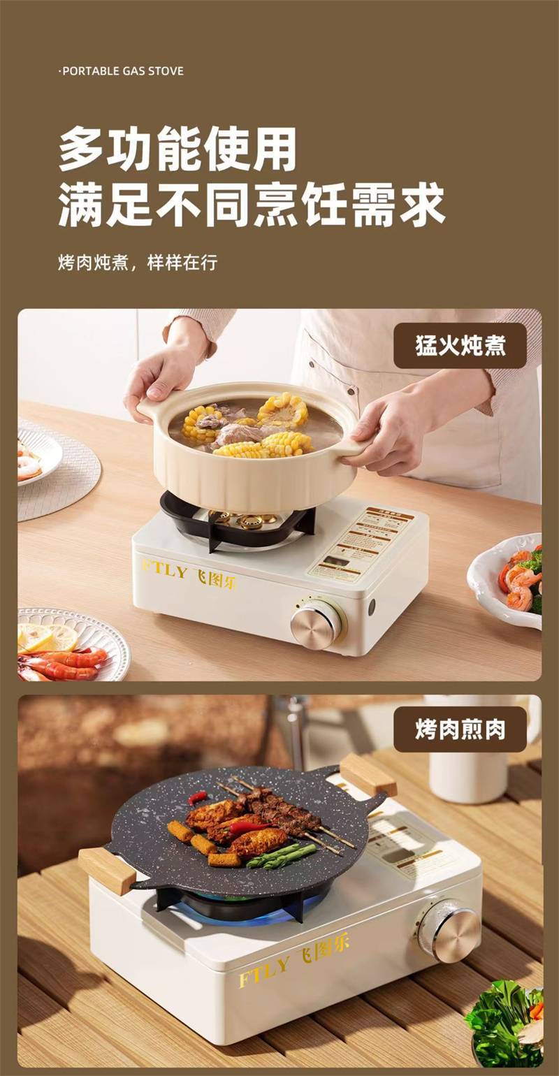 ·1、小巧便携,无烟烹饪; ·2、过压保护安全阀,放心使用; ·3、节能省气,强大火力; ·4、多档调节,自由切换; ·5、磁吸安装,气瓶安装方便; ·6、卡式炉手提盒包装,携带方便