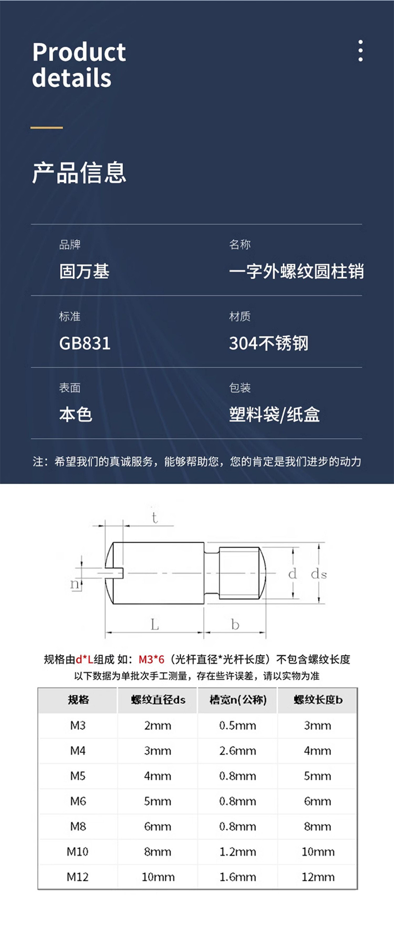 ·优质材质,光滑无毛刺,螺纹完整
