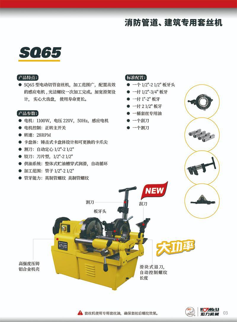 SQ65AC220V1.1kW1/2"~2-1/2"28RPMHW/虎王电动套丝机SQ65