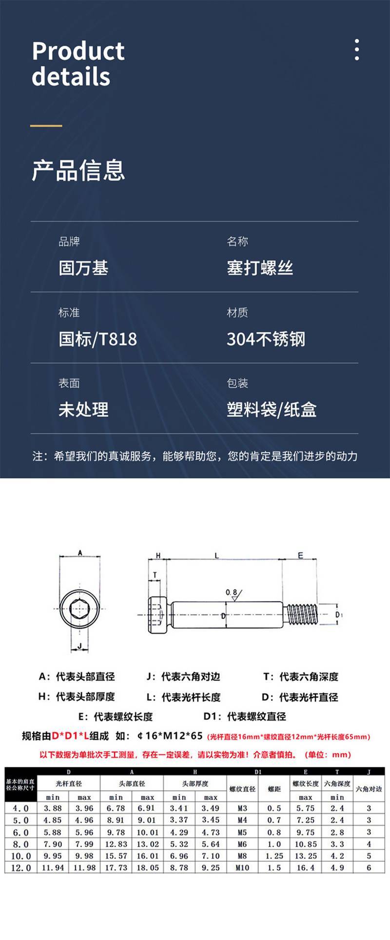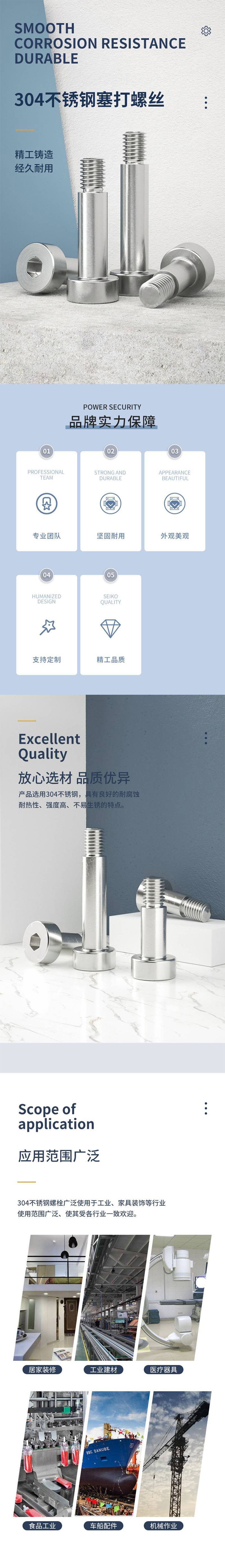·优质不锈钢,耐腐防锈,光滑无毛刺,螺纹完整