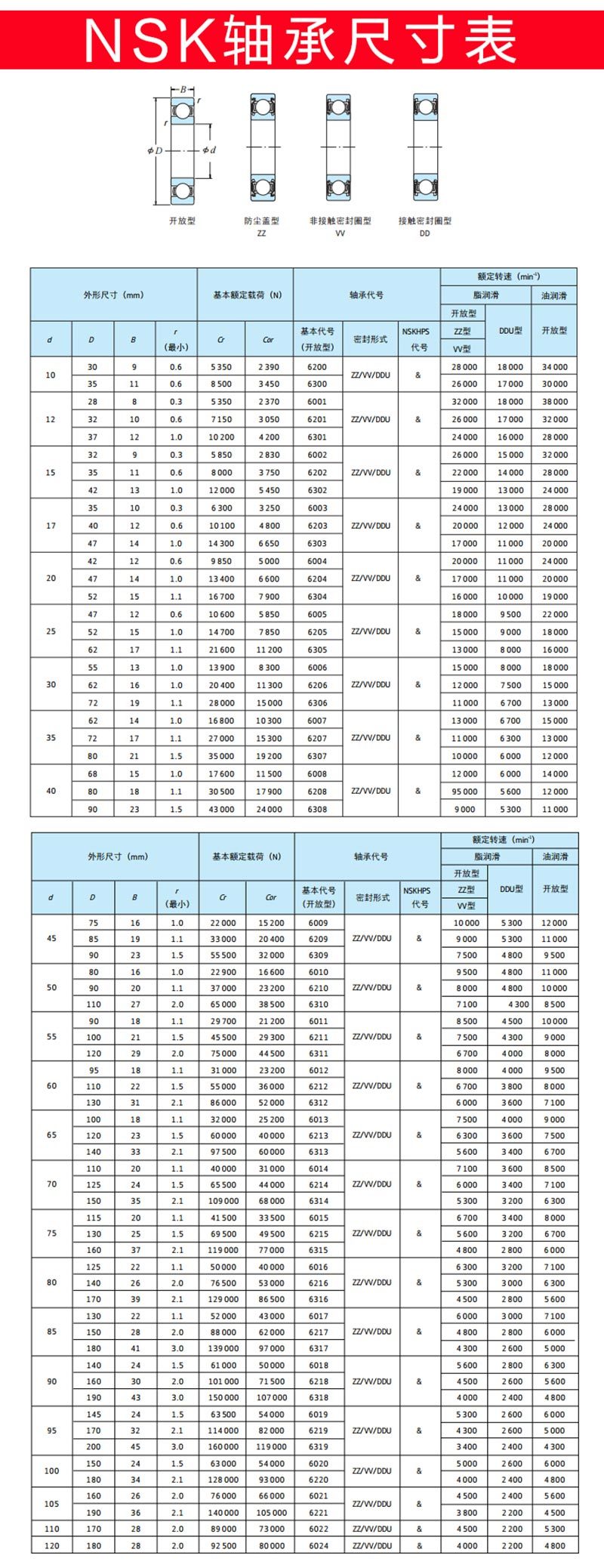 ·仅提供物流环节所需的塑料袋包装,非单盒商业包装 ·NSK品牌非质量问题不退不换