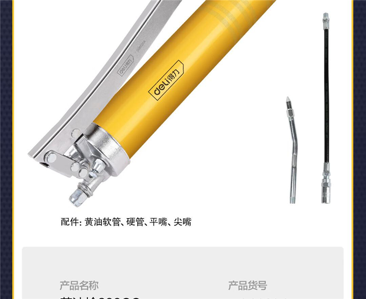 得力工具DQ80204黄油枪(大容量)600CC(黄)(把)