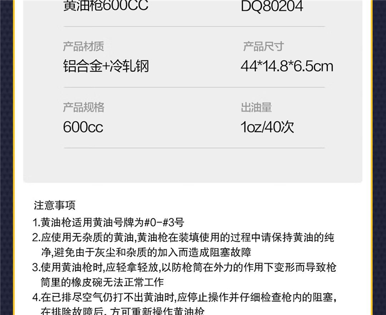 deli/得力DQ80204黄油枪(大容量)600CC(黄)(把)