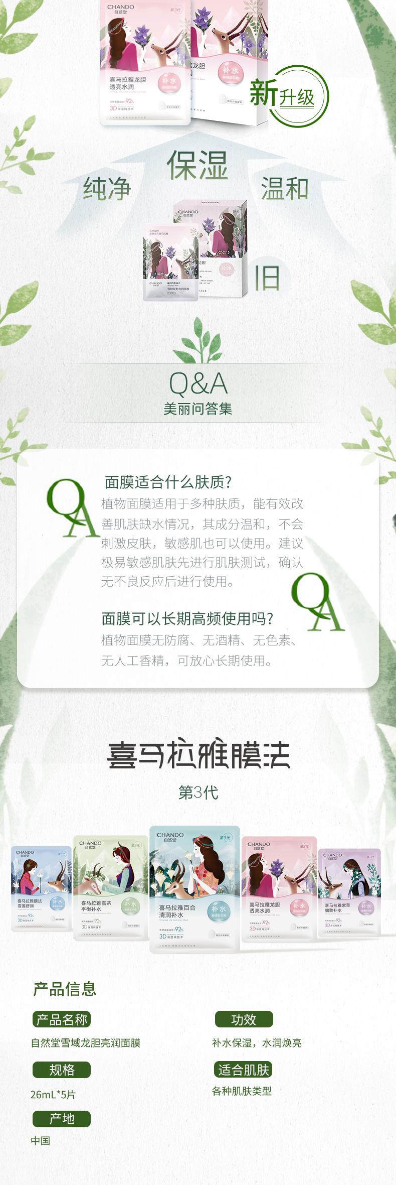 自然堂(CHANDO)雪域龙胆亮润面膜 26mL*5PCS