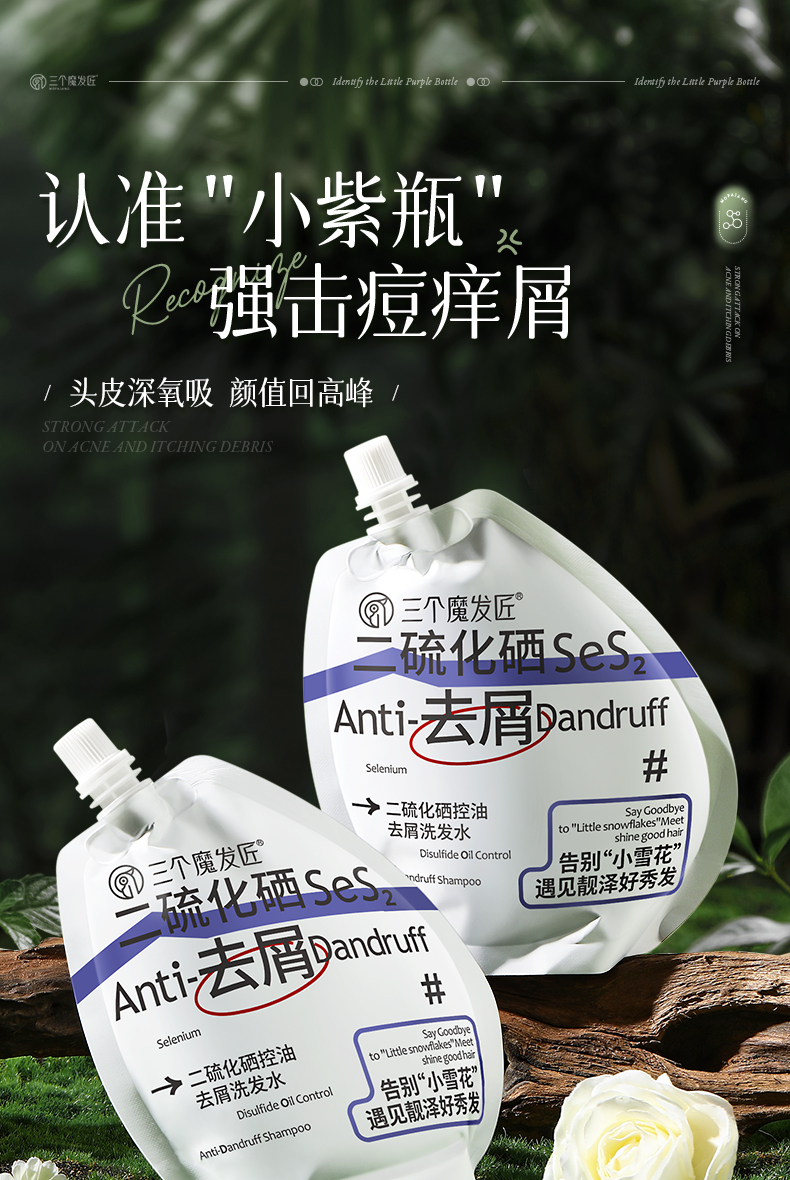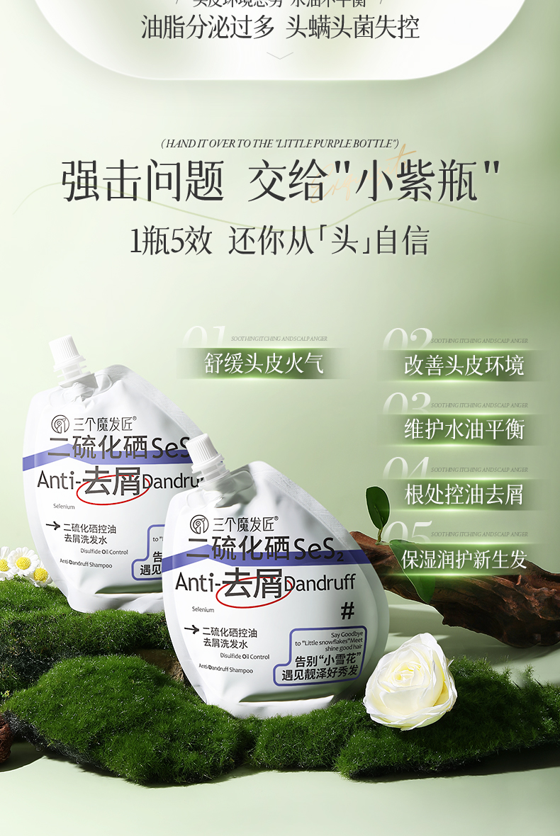 三个魔发匠 二硫化硒控油去屑洗发水200ml*2袋