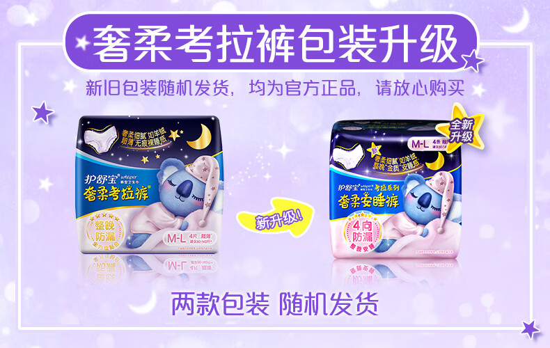 护舒宝奢柔考拉安睡裤M-L码裤型卫生巾2片(包)新老包装随机