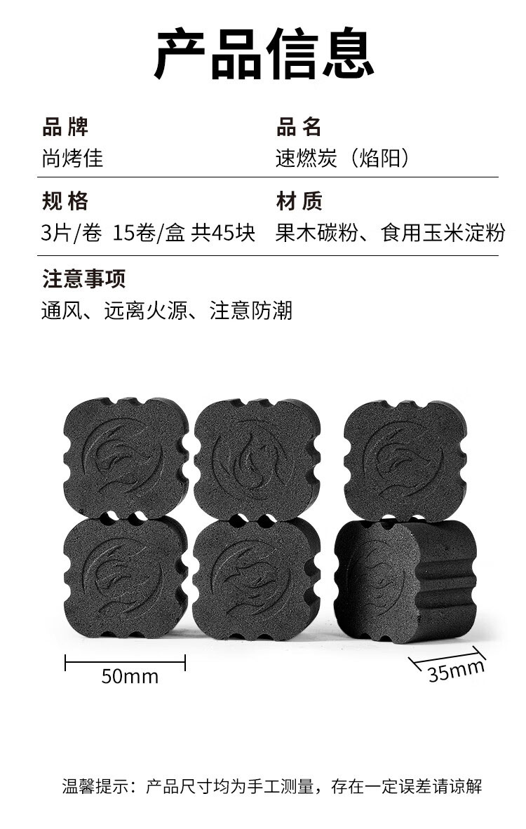 尚烤佳速燃炭45块果木炭粉压制无烟持久燃烧速燃炭SKJ-733