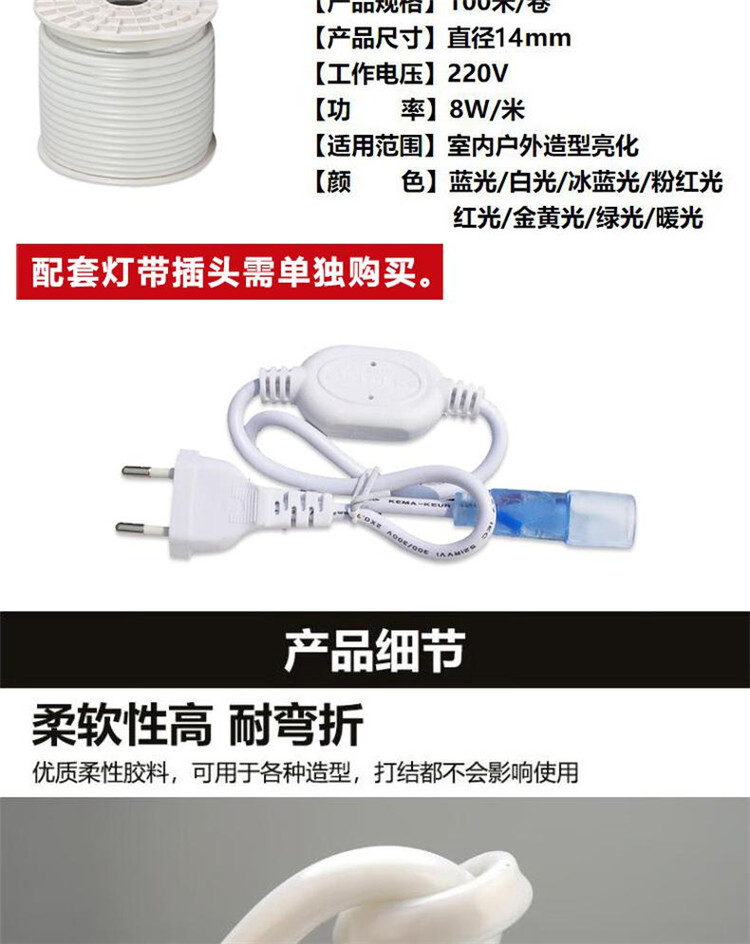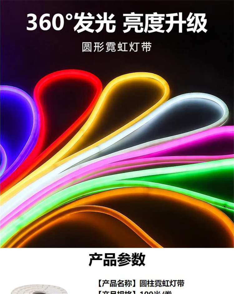 贝工 220V圆形霓虹灯带 360度发光柔性灯带 直径16mm 8W/米 粉红光 100米/盘(盘)