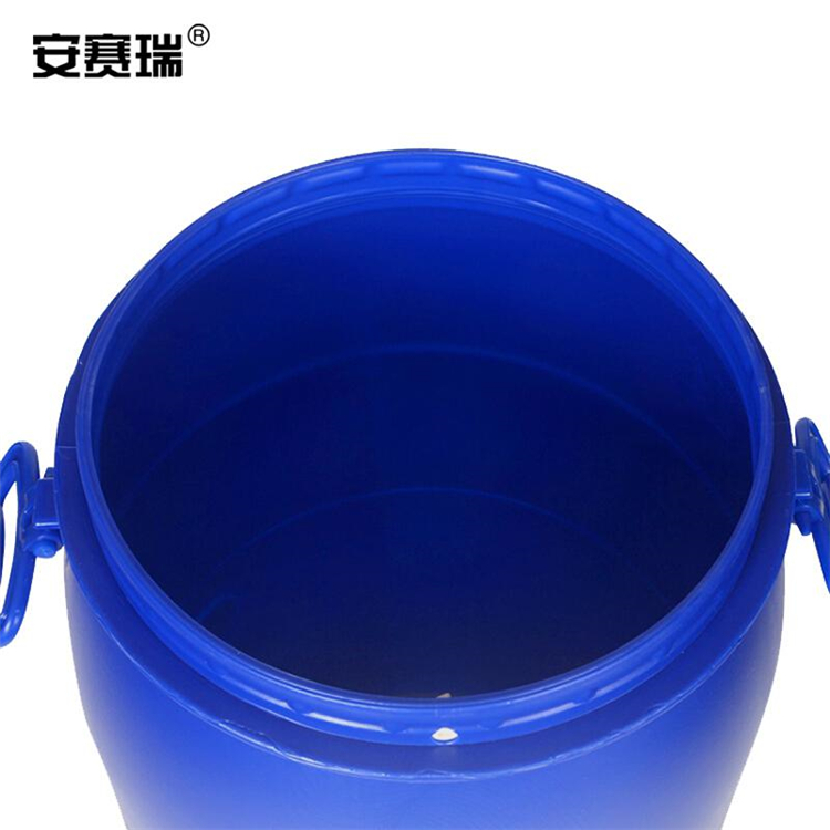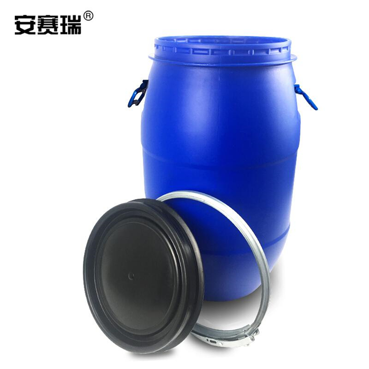 安赛瑞 24637 法兰桶铁箍桶 50L(1个装)新料化工塑料抱箍桶 加厚开口废液避光泔水桶发酵桶 带盖蓝色(单位:个)