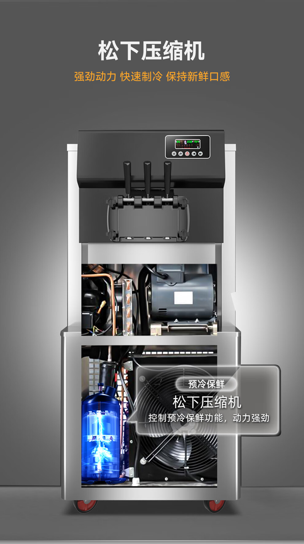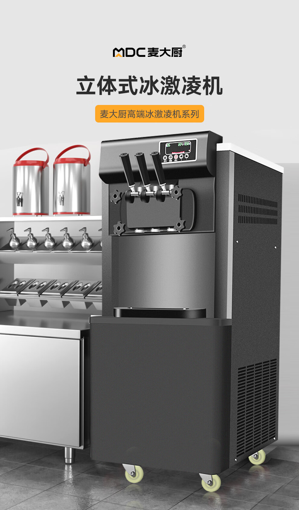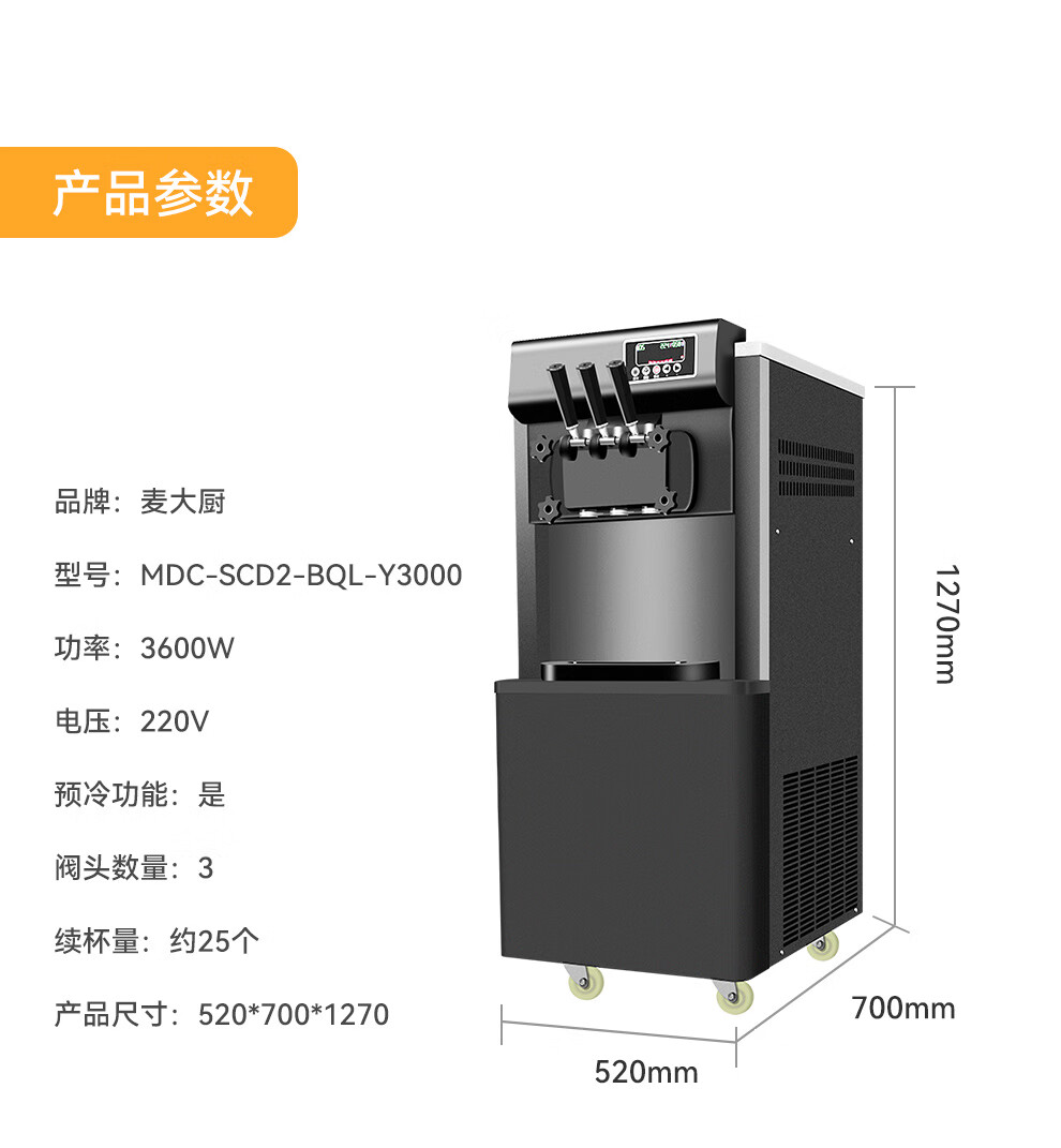 麦大厨 冰淇淋机商用 升级款 220V/3600W 三头立式 冰淇淋机 MDC-SCD2-BQL-Y3000