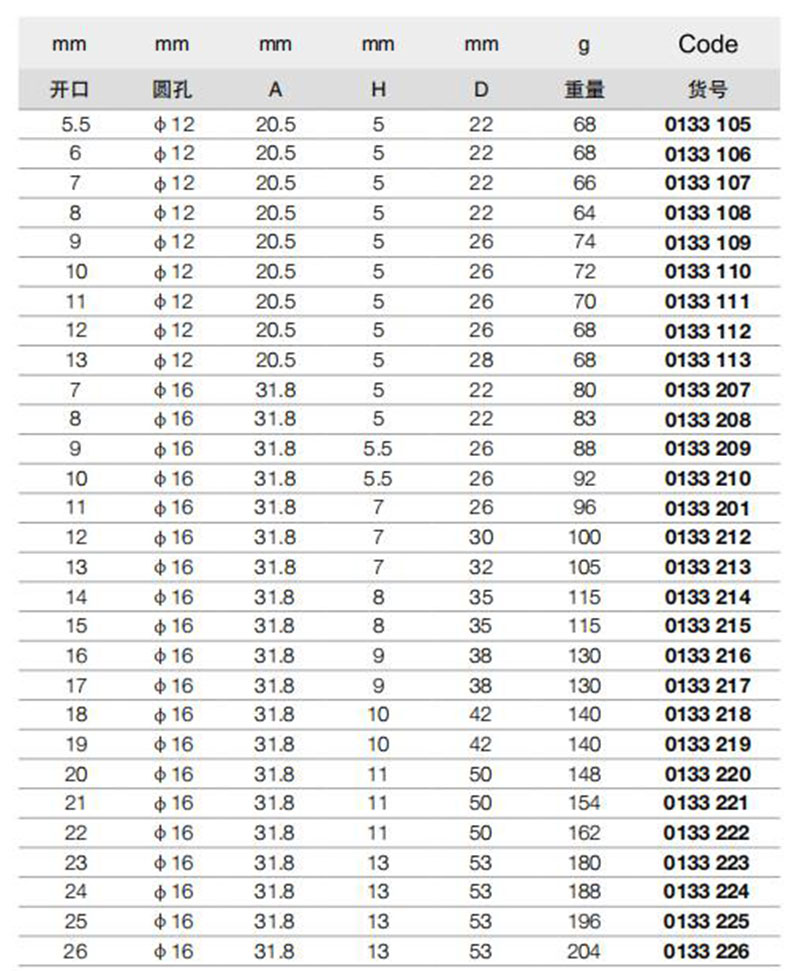·产品名称:宝合 Φ16MM圆孔开口扳手头 19MM 0133219 13T7827