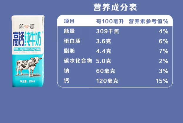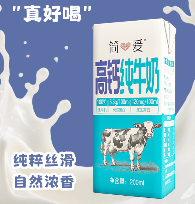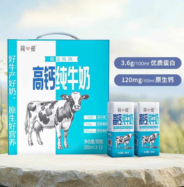 简爱高钙纯牛奶限定牧场3.6g优质蛋白常温整箱200ml*12盒/箱_1